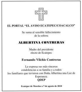 FALLECE LA SEÑORA ALBERTINA CONTRERAS, MADRE DEL PRESIDENTE ELECTO DE ECATEPEC, FERNANDO VILCHIS CONTRERAS