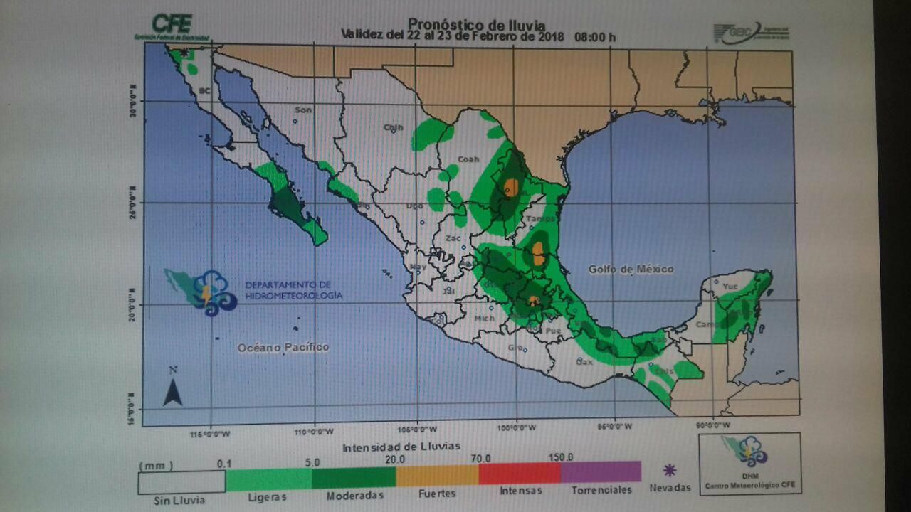 Los frentes fríos 31 y 32,favorecerán lluvias y vientos en Nuevo León, Tamaulipas,Hidalgo y San Luis Potosí.
