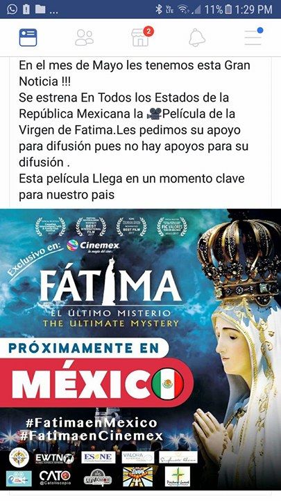 Se estrena en todos los países la película de la virgen de Fátima.